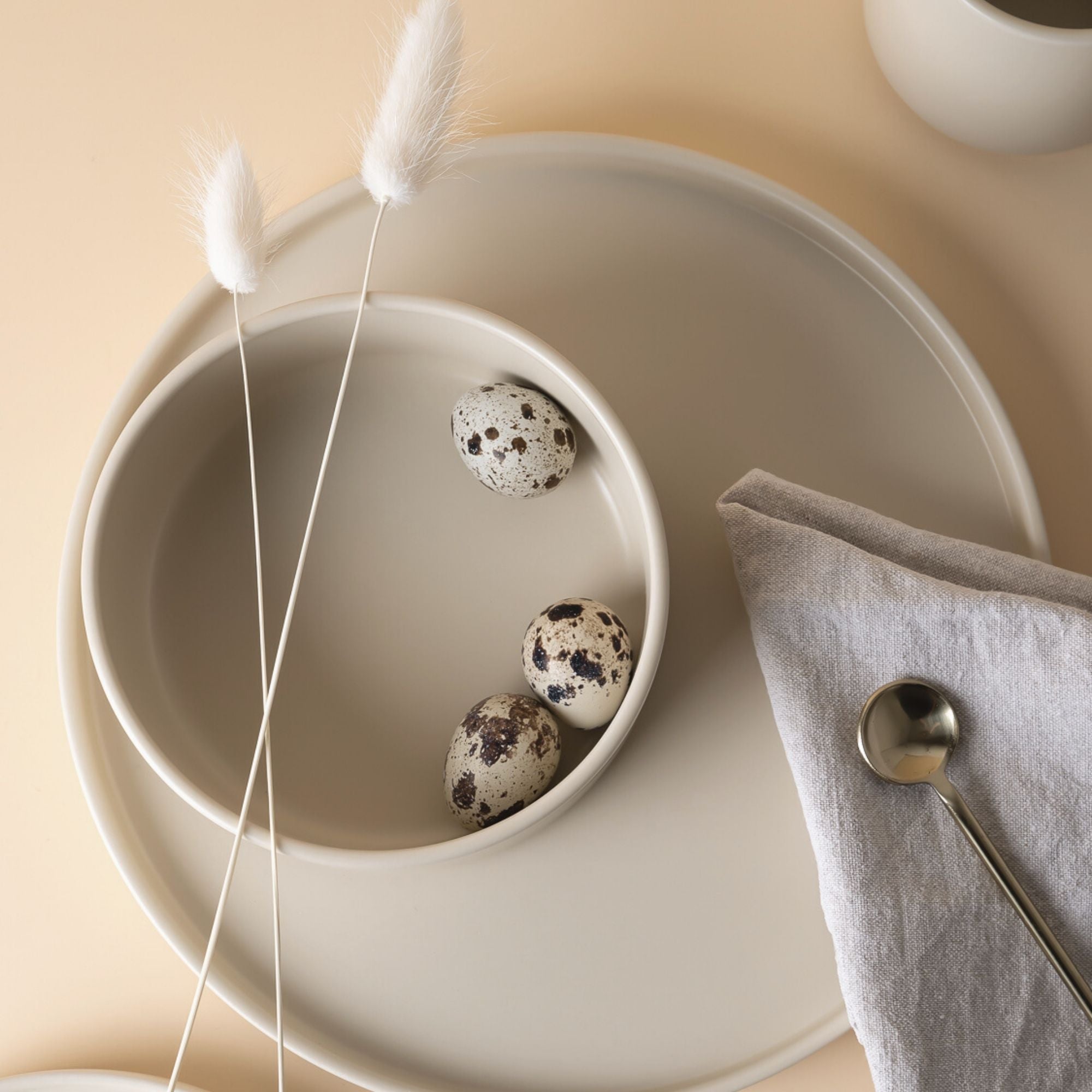 Inspiriert von den pastellfarbenen Wänden Portugals, sind unsere Stücke so konzipiert, dass sie gestapelt und die Farben gemischt und angepasst werden können. Vertikale Ränder schützen vor versehentlichem Verschütten. Diese Kollektion ist nicht nur ein modisches Dekor, sondern auch für den häufigen Gebrauch geeignet - sie ist zu 100 % mikrowellen-, spülmaschinen-, gefrierschrank- und ofenfest bis 220 °C. Sie werden nie wieder zu billigem Standardgeschirr zurückkehren.