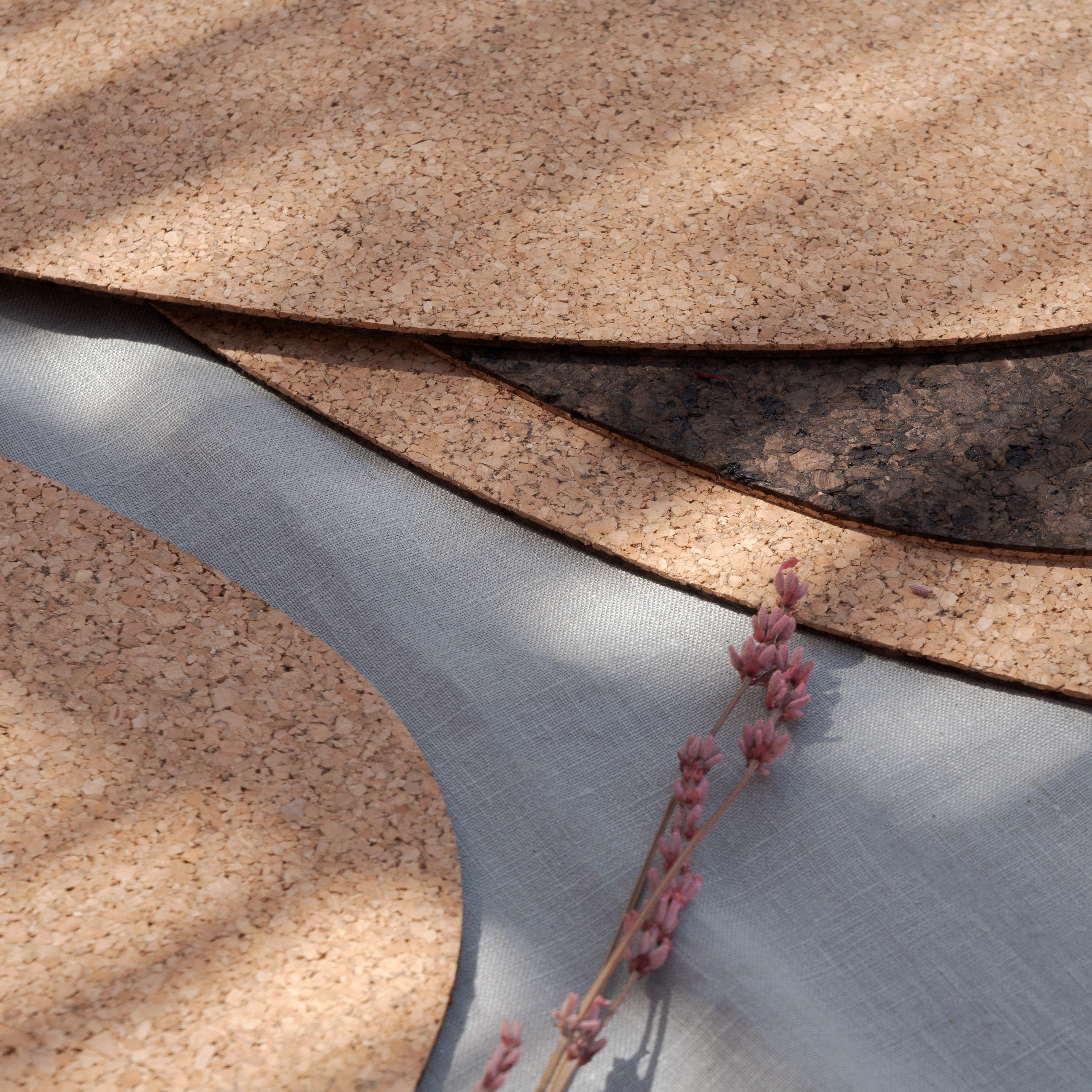 Kork ist nicht nur umweltfreundlich, sondern auch von Natur aus antibakteriell und wasserfest. Das macht ihn zum perfekten Material für Ihren Esstisch, denn er schützt die Oberfläche vor Hitze und unordentlichen Essern. Er ist leicht zu reinigen, lebensmittelecht und sehr langlebig. Wir haben das Material doppelt beschichtet, um die Haltbarkeit noch weiter zu verbessern, damit Sie sicher sein können, dass Ihr Lieblingstisch sicher und sauber bleibt.