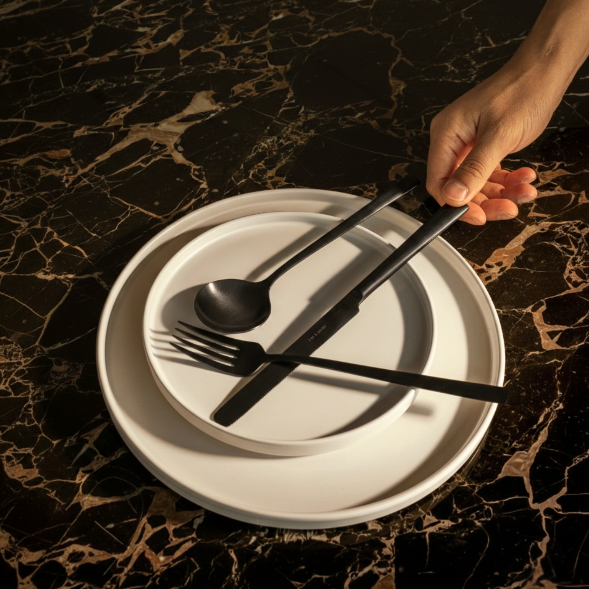 Das perfekte Besteck set beginnt mit den besten Rohstoffen. Wir verwenden nur den hochwertigsten zertifizierten europäischen Premium-Edelstahl (Güteklasse 304), der 18% Chrom und 10% Nickel enthält (18/10). Diese Stahlsorte ist weitaus rostbeständiger als die billigeren Alternativen 18/8 oder 18/0. Außerdem hinterlässt er keine lästigen dunklen Flecken auf Ihren Tellern. Damit sind unsere Bestecke zu 100 % spülmaschinenfest und immer für Ihre Erinnerungen am Esstisch mit Ihren Gästen und Lieben da.