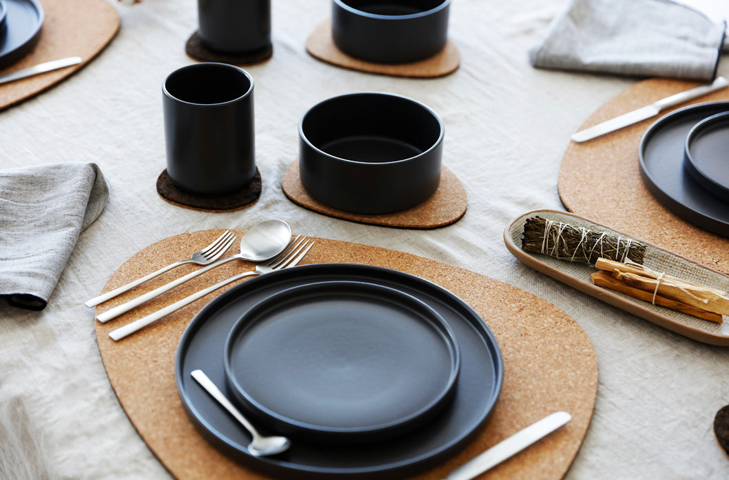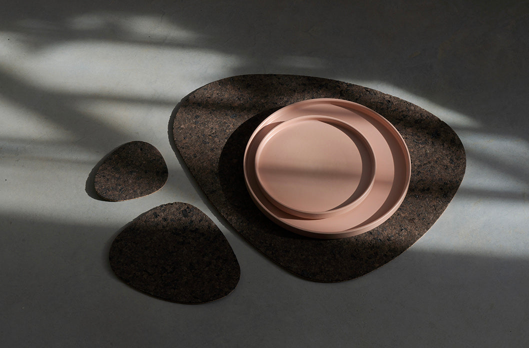 With our placemat collection, we chose a durable and sustainable material that adds another visual dimension to our existing modern and minimal tableware collection. A contemporary twist to an otherwise traditional material, our asymmetrical shapes captures the attention and is a sure conversation starter.